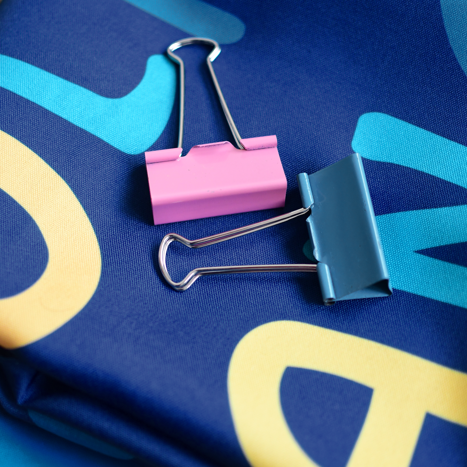Bandeira decorativa em tecido, leve e resistente de 100×150 cm. Acompanha dois prendedores de metal de cores aleatórias.